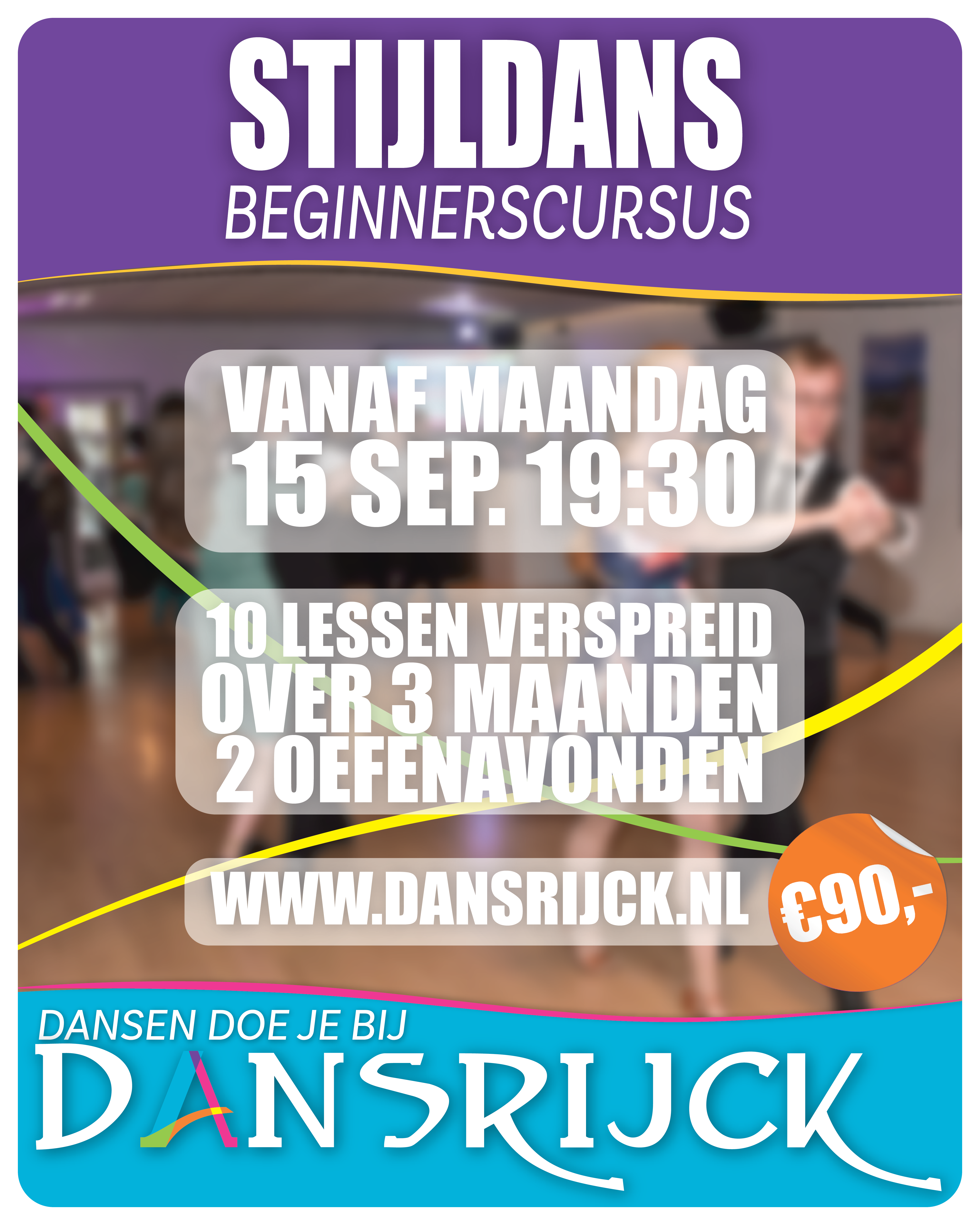 - Korting als je meerdere cursussen volgt of meerdere seizoenen tegelijk afneemt (vraag naar de mogelijkheden en kortingscode via een privébericht of mail naar info@dansrijck.nl).